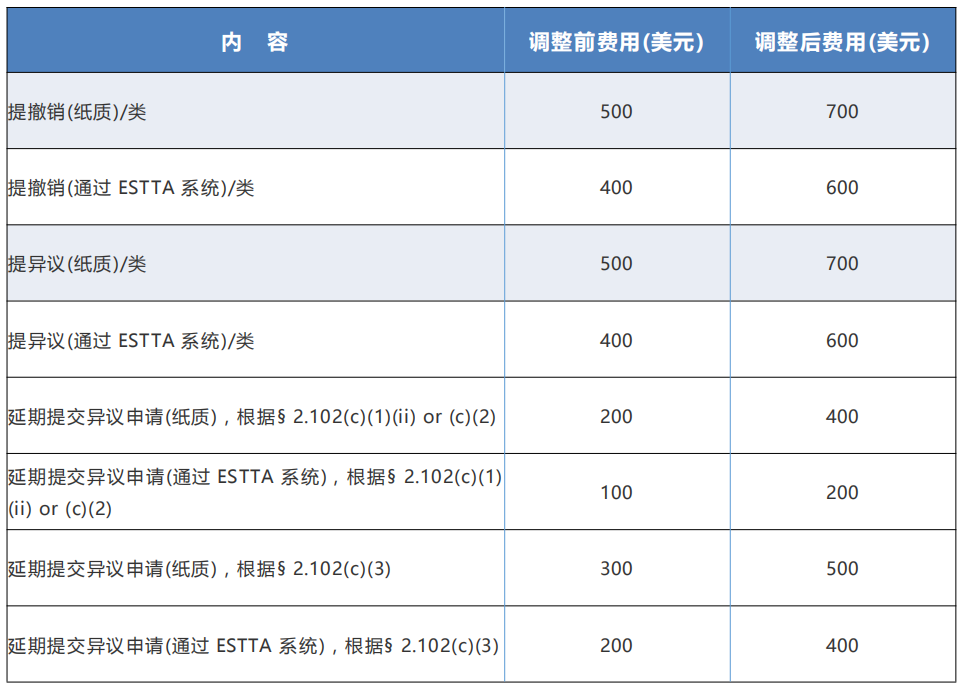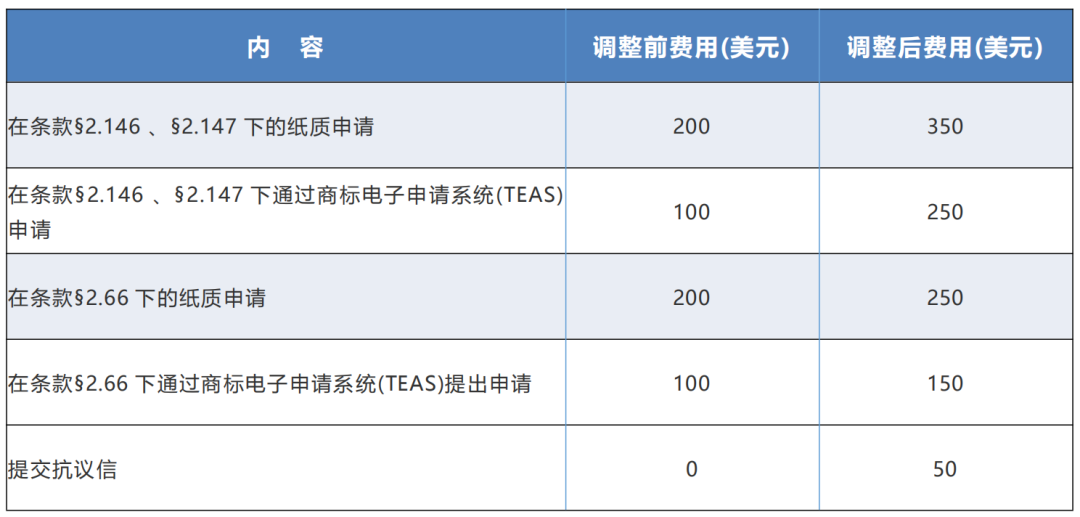 - TTAB opposition,appeal and trial proceedings(商標(biāo)審理與上訴委員會(huì)的異議、上訴和審判程序)現(xiàn)今美國(guó)專(zhuān)利商標(biāo)局正式公布漲價(jià),這也是美國(guó)商標(biāo)局近三年來(lái)第一次上調(diào)收費(fèi)標(biāo)準(zhǔn)