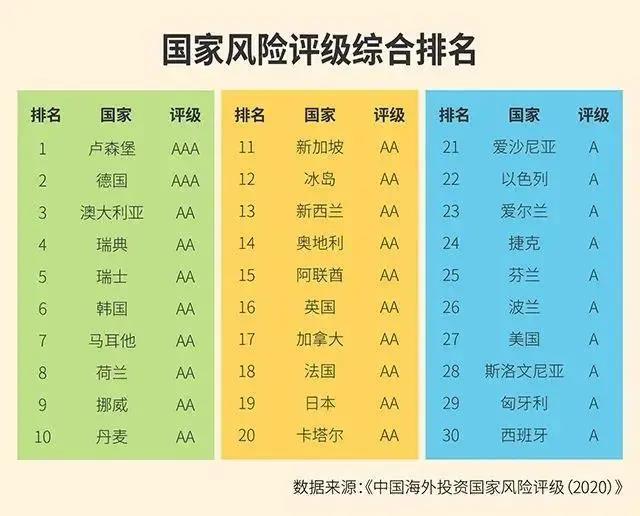 從總的評(píng)級(jí)結(jié)果來(lái)看,發(fā)達(dá)國(guó)家經(jīng)濟(jì)基礎(chǔ)較好,政治風(fēng)險(xiǎn)較低,社會(huì)彈性較高,償債能力較強(qiáng),整體投資風(fēng)險(xiǎn)明顯低于新興經(jīng)濟(jì)體,因此評(píng)級(jí)結(jié)果普遍高于新興經(jīng)濟(jì)體,海外投資風(fēng)險(xiǎn)相對(duì)較低。
