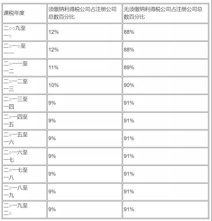 在計及《財政預(yù)算案》宣布的一次性利得稅寬減措施前,約113100家(即9%)公司須繳納利得稅;無須繳納利得稅的公司約1157900家,占91%。