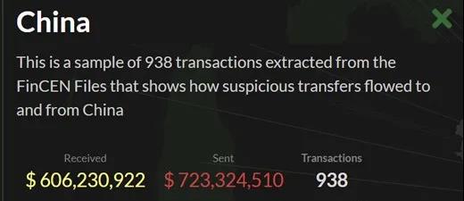 報告也提到了中國大陸。文件顯示有938宗“可疑交易”與中國大陸有關,有超過6億美元流入中國大陸,7.23億美元從中國大陸流出。